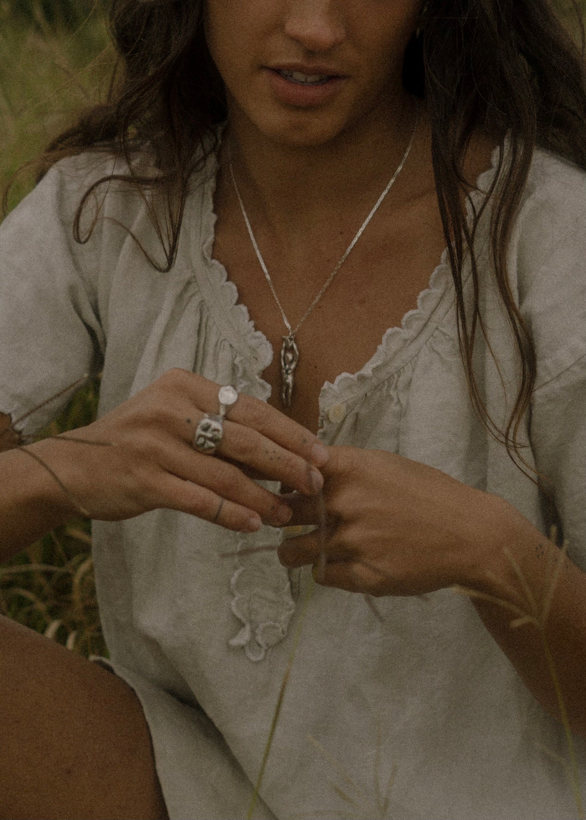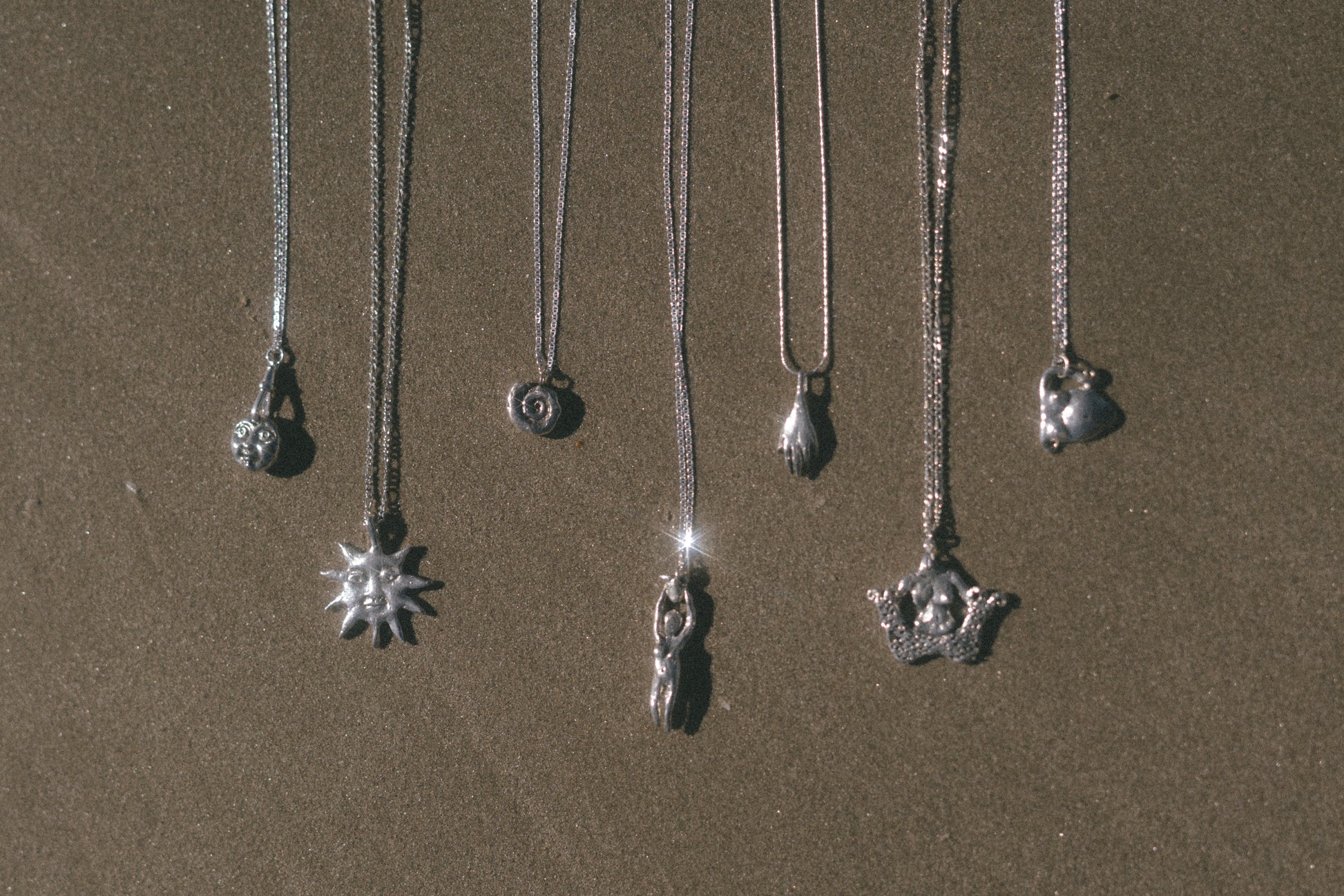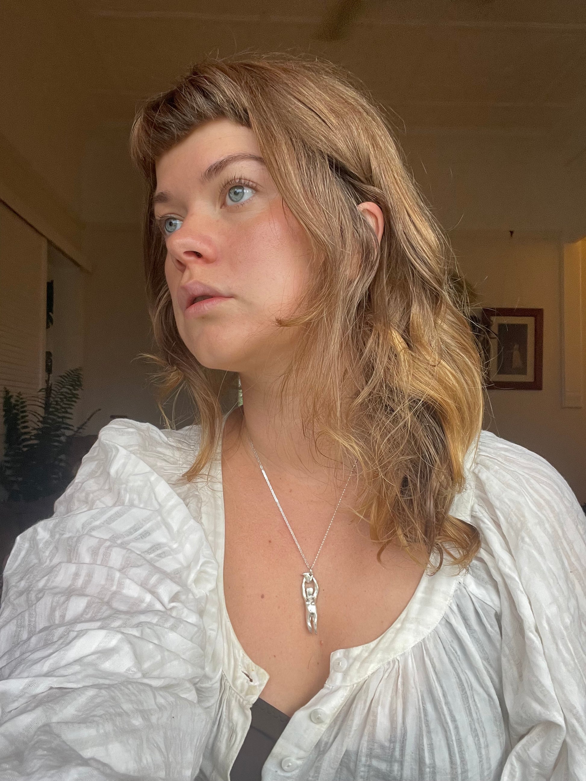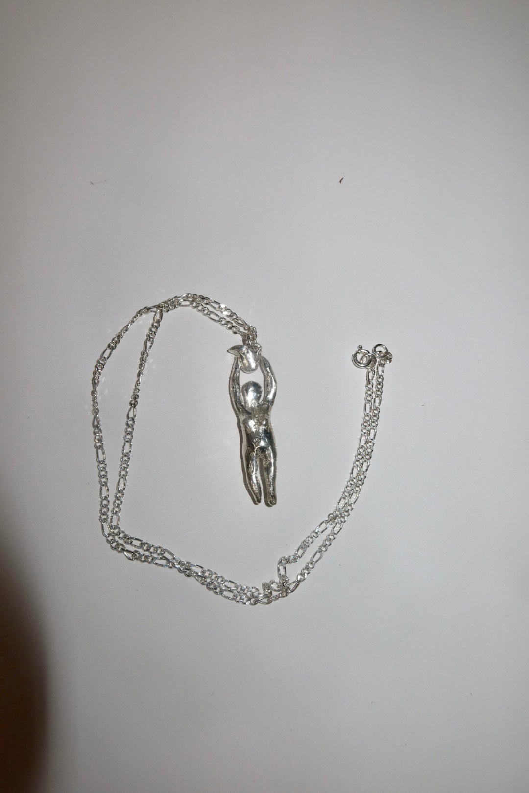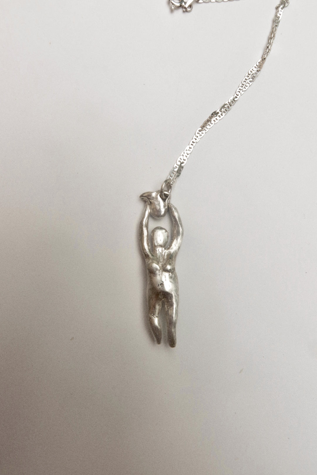 Handcrafted ornamental object in solid 925 silver on a sterling silver box chain - made by Madeline Harris at home.